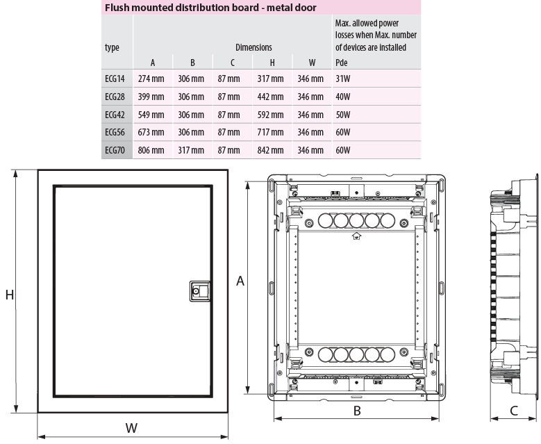 Щит металлопластик. ECG 56 COMBO3/1-I (12+2мод, 1ряд., 3м.п., перф.метал.двер.)