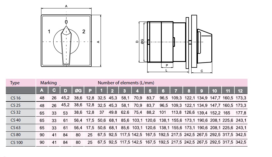 Основными преимуществами переключателей CS следует отметить их компактные размеры, выдающийся механический и электрический ресурс, а также высокие характеристики при включении и отключении, что делает их надежным и эффективным выбором для разнообразных электротехнических приложений.